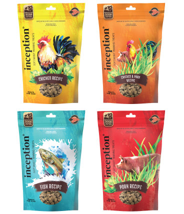 Inception Soft Moist Training Treats are extremely tasty and small. The treats are perfect for training as they are bite-size pieces. They're made with nutritious and delicious ingredients with animal protein first, as well as wholesome natural ingredients: oat flour, milo, millet, and dried honey.